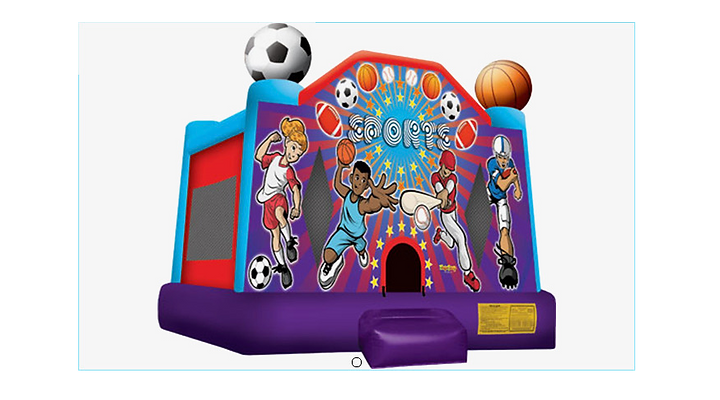 Be sure to stretch before jumping in our Sports Themed Bounce House! Perfect for any event, this service offers safe, clean, and affordable entertainment for kids. Book now and bring joy to your next party! *REQUIRES OPEN AREA of 18'x18'
